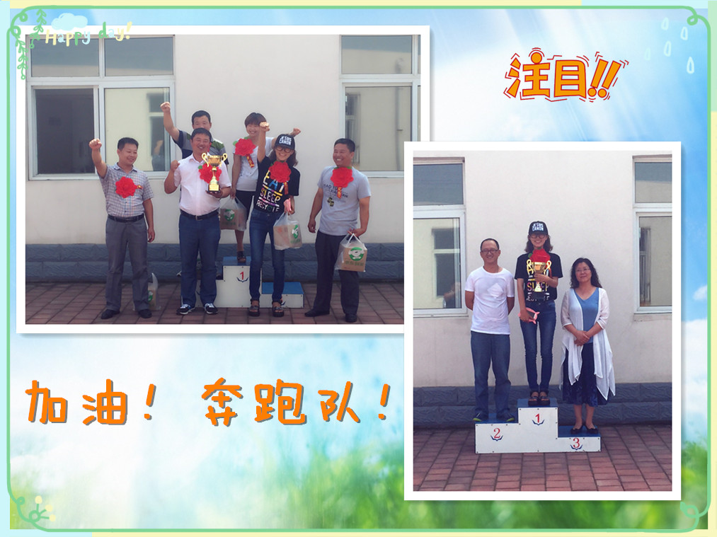 在人力资源部朱卫星经理的主持下,每个团队列队喊出自己的口号,展现各自团队气势,并在最后,由李总带领大家喊出“我最强、我最棒、加财加财加财!”的口号来激励、鼓舞大家,全场气氛热烈。随后朱经理通报7月份任务完成情况,其中奔跑队以104.2%完成收入任务、100.4%完成回款任务,按照《2015年度公司任务达成劳动竞赛》相关要求,获得团队第一!李总给获奖团队颁发奖杯、团队成员带红花且奖励每人酸奶机一台,获奖团队照全家福登龙虎榜在公司文化墙上予以表彰!