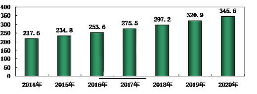 近几年我国水处理剂市场需求量呈现逐年上升的趋势。2015年我国水处理剂行业需求量达到217.6万吨,预计到2020年我国水处理剂行业需求量将达到345.6万吨。