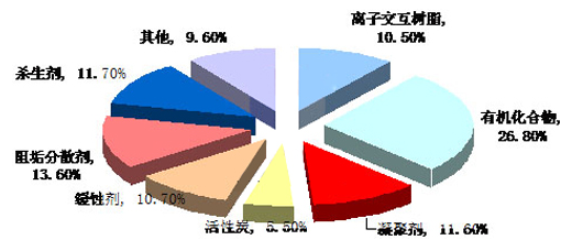 水处理剂是一类用于水处理的化学药剂的总称,广泛用于石油、化工、冶金、交通、轻工、纺织等工业部门。水处理剂包括缓蚀剂、阻垢剂、杀菌剂、絮凝剂、净化剂、清洗剂、预膜剂等。在实际应用中,往往使用复合配方的水处理剂,或者综合应用各类水处理剂。因此,既要注意各组分之间由于不适当的复配而产生对抗作用,使效果降低或丧失,也要充分利用协同效应(几种药剂共存时所产生的增效作用)而增效。此外,大多数水处理系统是敞开系统,会有一定的排放量,使用时要考虑到各类水处理剂对环境的影响。